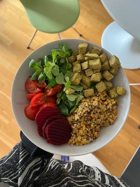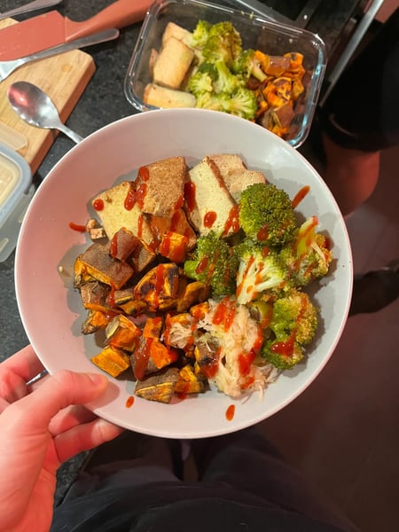 Sweet potato, Tofu , Broccoli, Sauer kraut